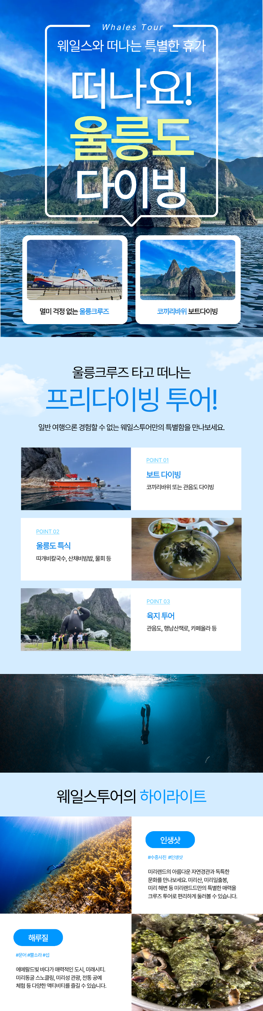 [울릉도 3박4일 프리다이빙] #국내1등바다 #코끼리바위 #울릉크루즈 #울릉도특식